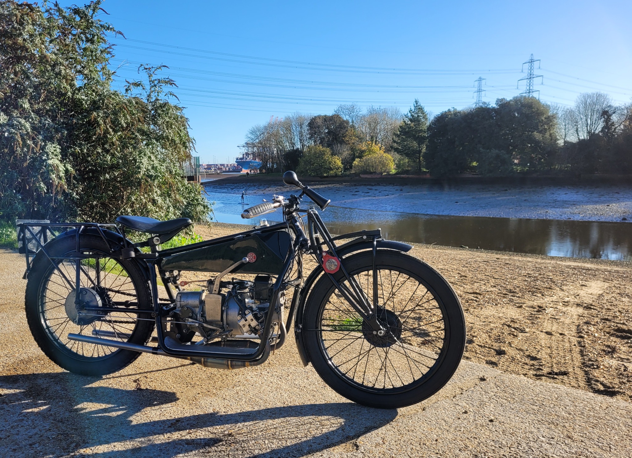 Second picture this month is of WA at the local beach on a bright but cold morning. You can just see part of Southampton container terminal in the background, lovely.